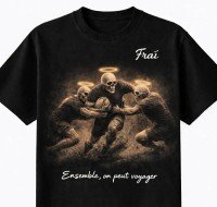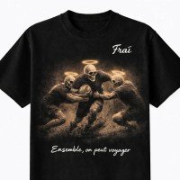 À travers son visuel fort et son message “Ensemble, on peut voyager”, ce tee-shirt incarne l’idée que les liens ne disparaissent jamais. Il évoque le souvenir, la fraternité et la continuité au-delà du temps.