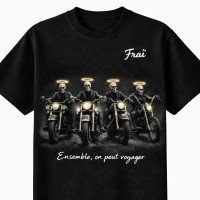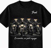 Affirmez votre style avec le tee-shirt homme “Forever”, une pièce forte au design unique qui incarne la liberté, la fraternité et l’esprit rebelle. Son visuel percutant de motards squelettes avec auréoles symbolise un lien éternel et une passion sans limites pour la route.